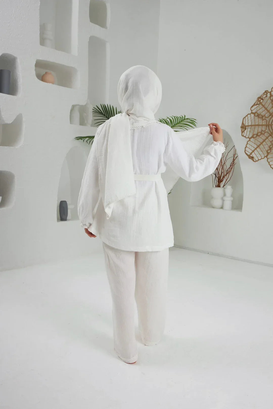 Lolly Babies anne takımları, annelerin konforu ve şıklığı düşünülerek özenle tasarlandı! 🌿 %100 pamuklu, müslin kumaştan üretilen takımlarımız, nefes alabilen yapısıyla sizi terletmez, yumuşacık dokusuyla maksimum rahatlık sunar.