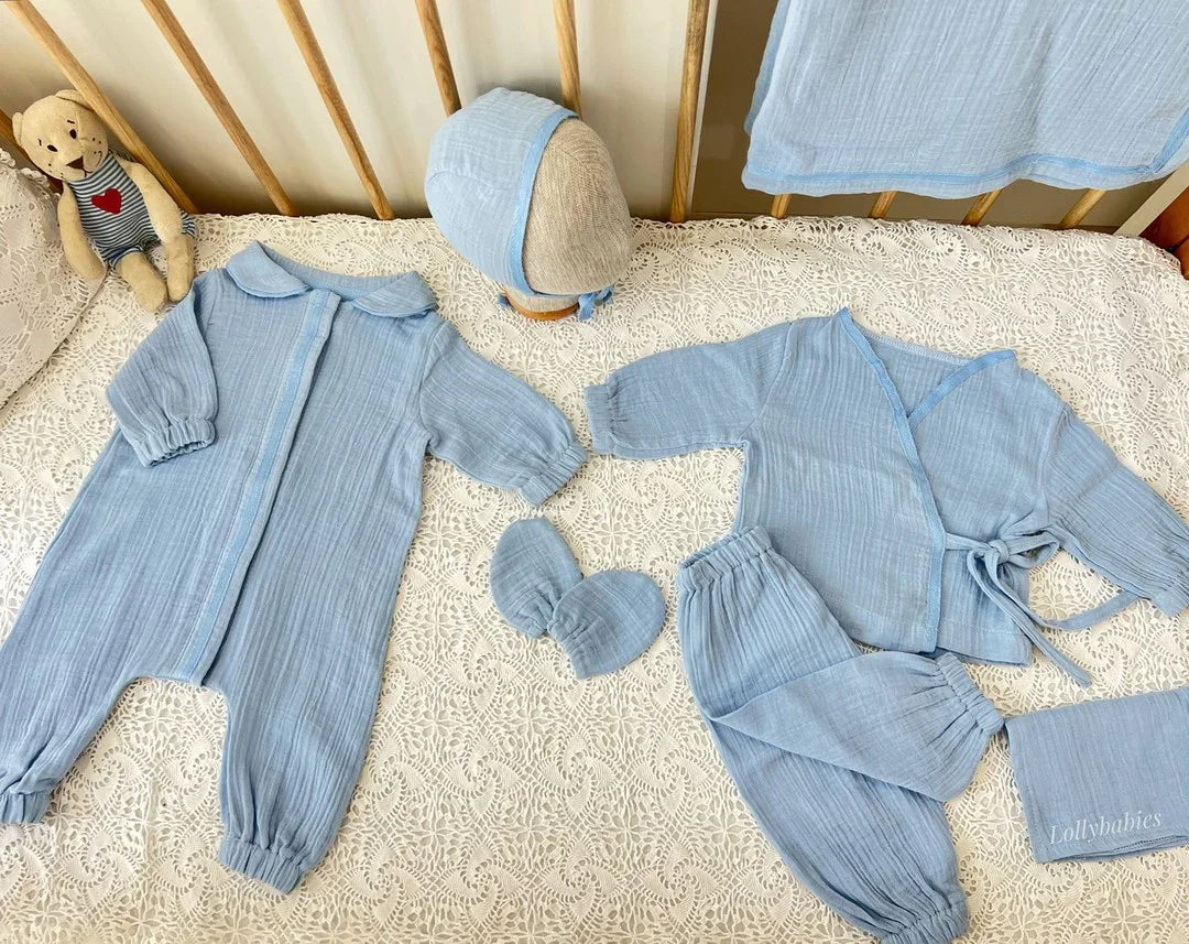 Erkek Bebek Hastane Çıkış Seti 7'li | Bebe Mavi | Yenidoğan