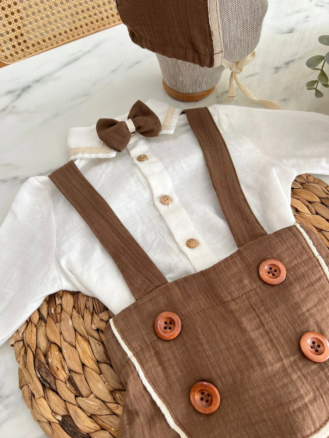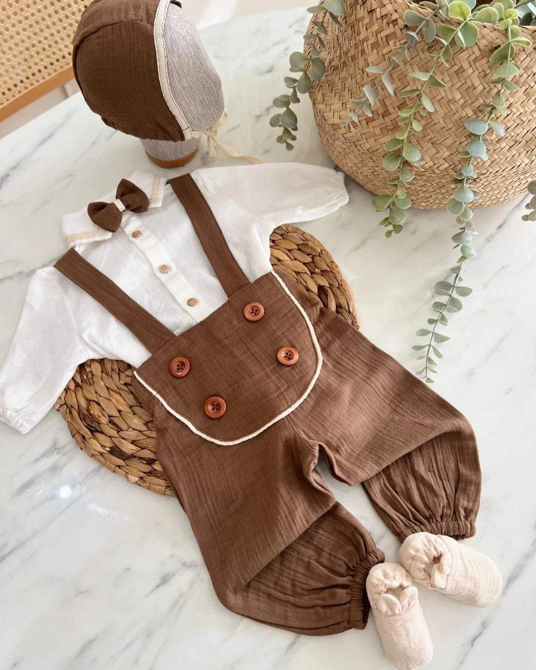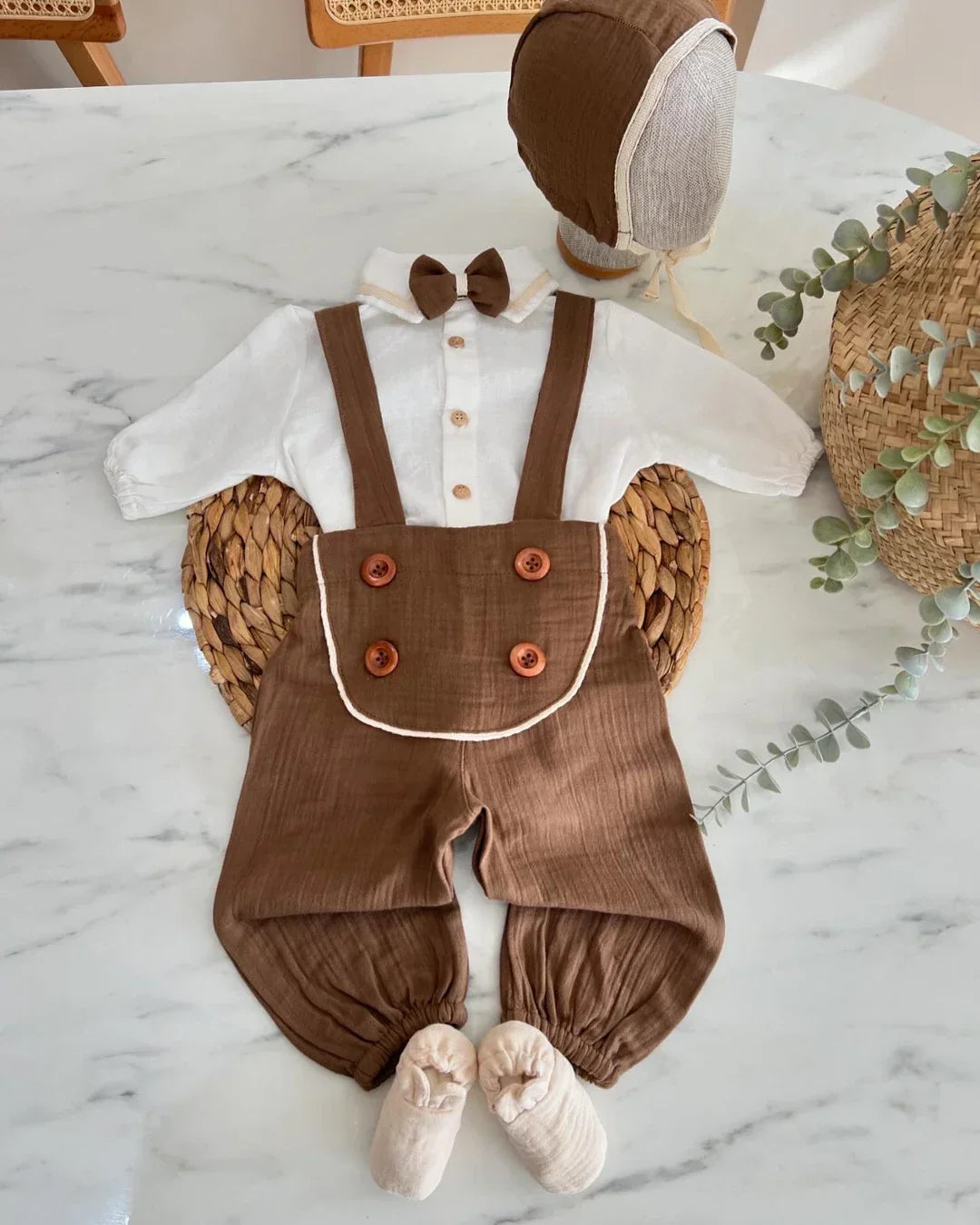 Bu 3'lü erkek bebek salopet takımı, yaz aylarına uygun doğal ve hafif kumaşlardan üretilmiştir. Set içeriğinde patikli müslin salopet, keten düğmeli gömlek ve pamuk müslin şapka yer alır. Bebek giyiminde konfor ve şıklığı bir arada sunan bu takım, doğum günü, hastane çıkışı, bayram gibi özel günlerde tercih edilebilir. Nefes alabilen kumaşı sayesinde hassas ciltlere uygundur. Yenidoğan giyimden 18-24 ay seçenekleriyle tercih edebilirsiniz. Kız ve erkek bebek giyim koleksiyonlarında öne çıkan bu tasarım, pratik kullanım ve zarif görünümüyle annelerin favorisi olmaya adaydır.
