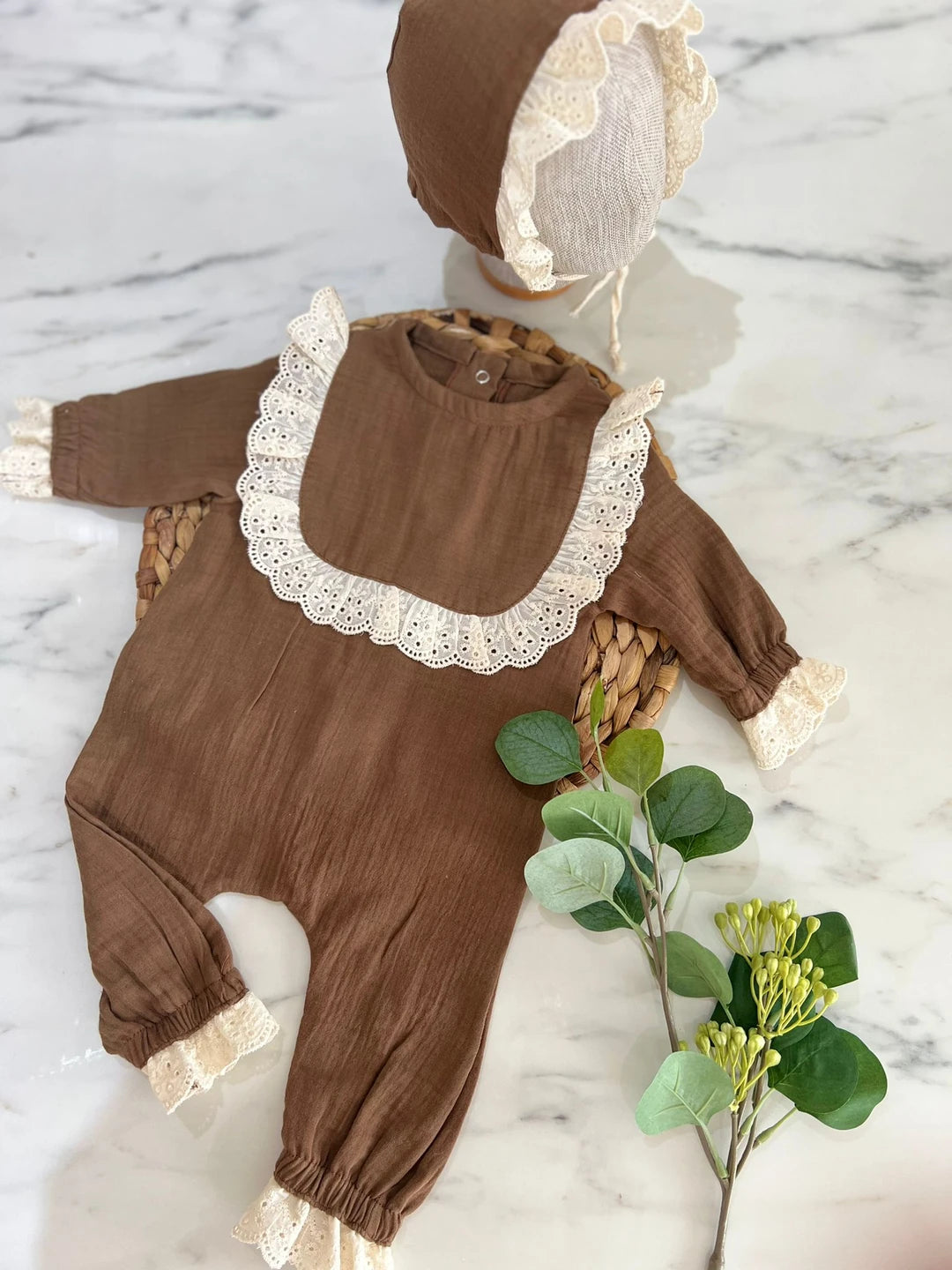 Müslin Bebek Tulum ve Şapka Seti | Love Serisi | Yenidoğan & Bebek Giyim