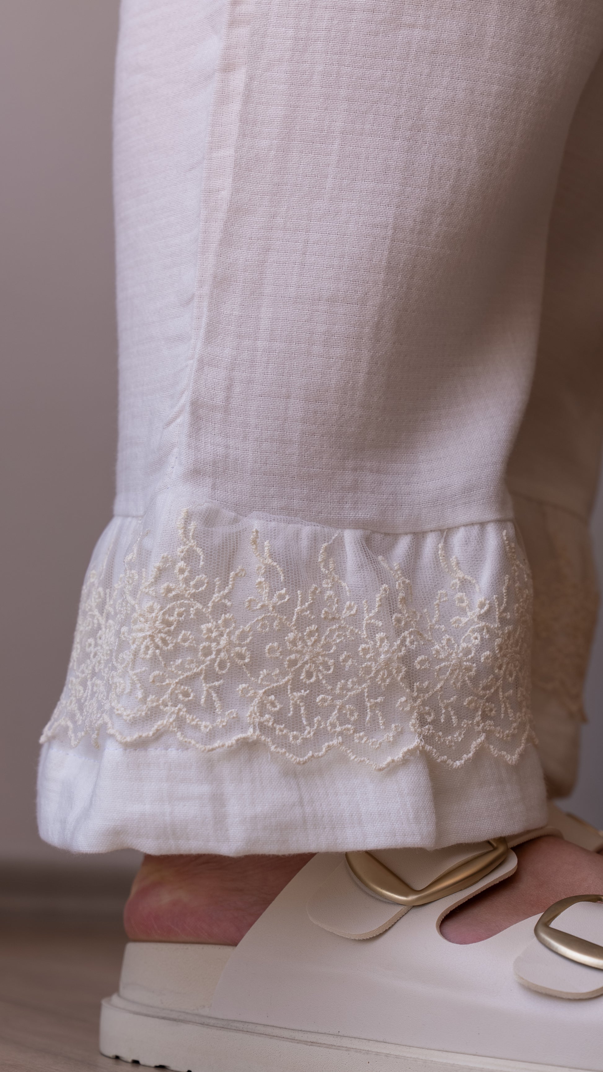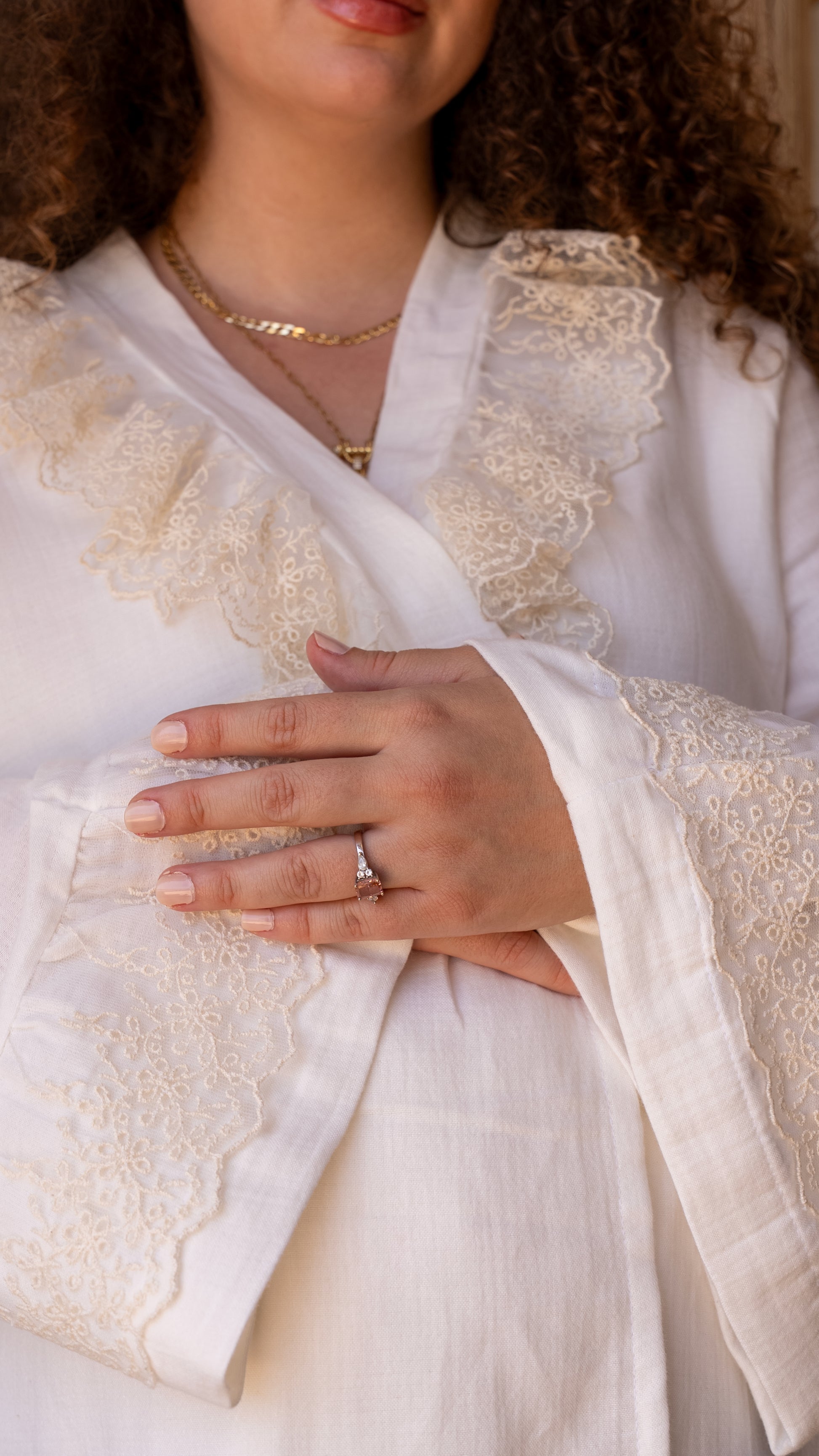 Zarif ve konforlu bir lohusa takımı arıyorsanız, bu ekru renkli pijama seti tam size göre.