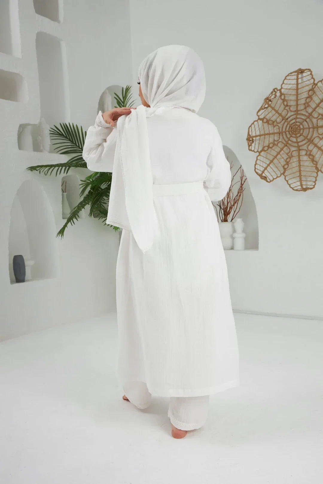Sabahlık | %100 Organik Pamuk Müslin | Beyaz | Angel Serisi