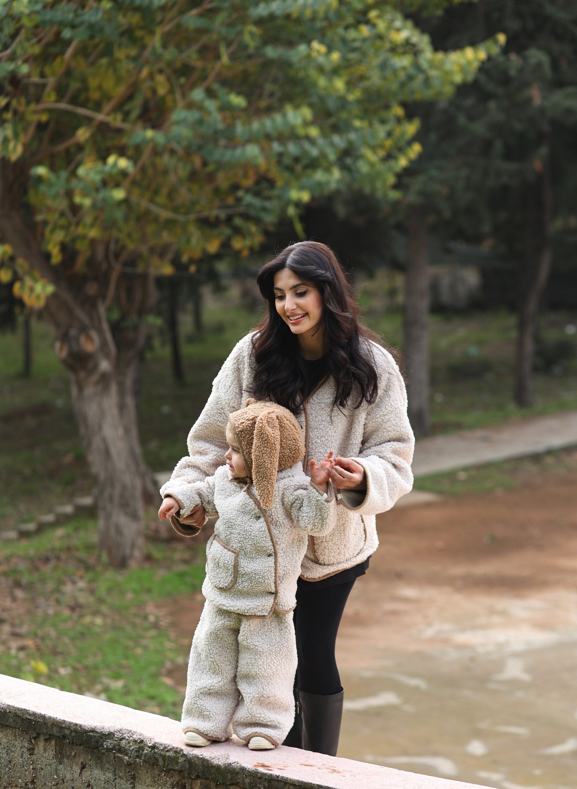 Rahat kalıbı, bebeğin gün boyu özgürce hareket etmesine olanak tanırken; yumuşak iç polar yüzeyi ciltle temas eden bölgelerde sıcak, nazik ve konforlu bir his bırakır. Soğuk havalarda ideal ısı dengesini korur, bebeği üşütmeden sarar.